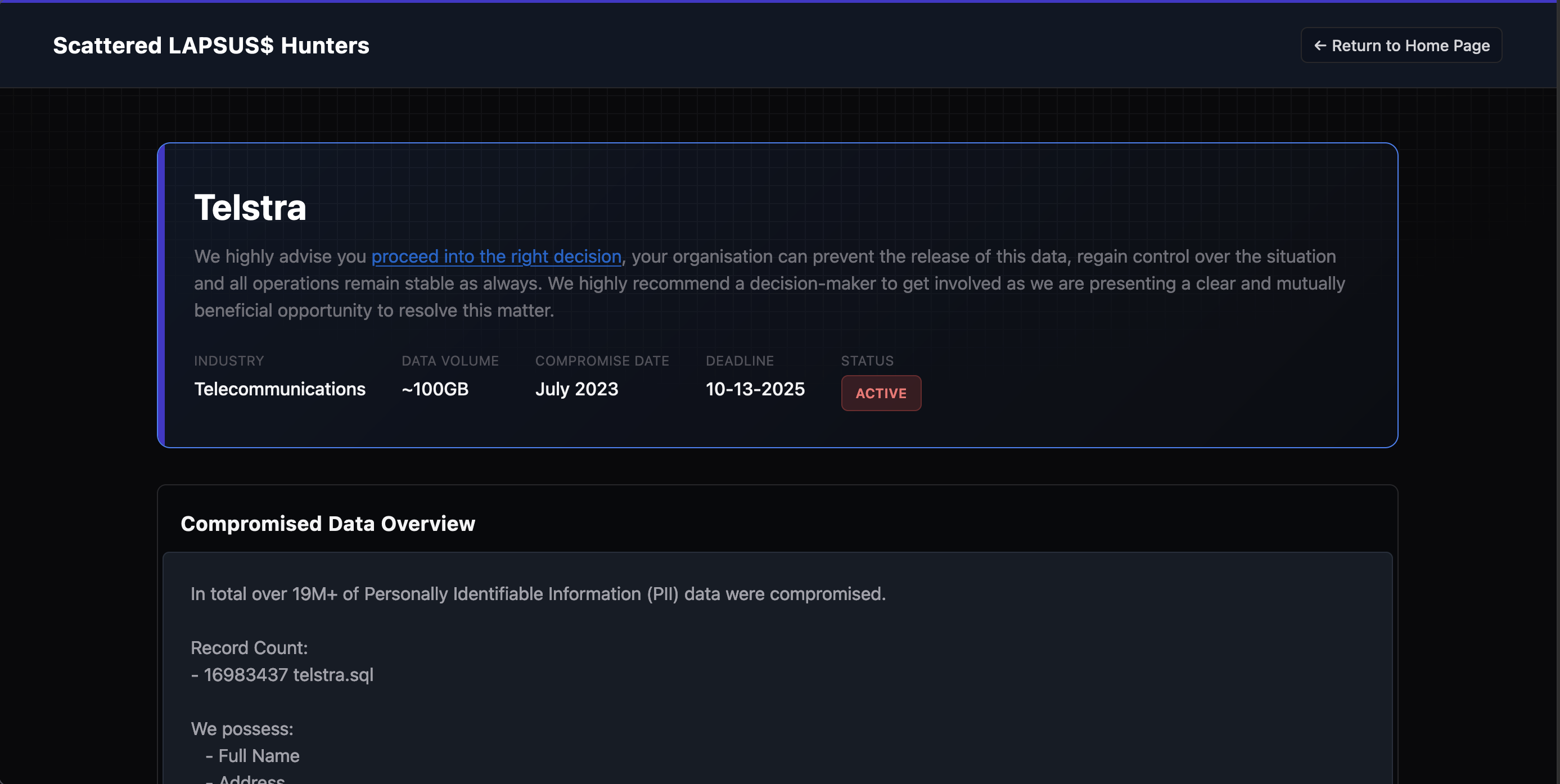 - Extortion Demand: The attackers threaten to publish the stolen data publicly unless a ransom is paid