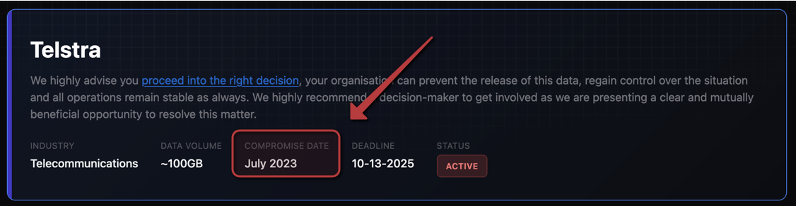 8 October 2025 – According to the threat actor, the compromise of Telstra dates back to this date.